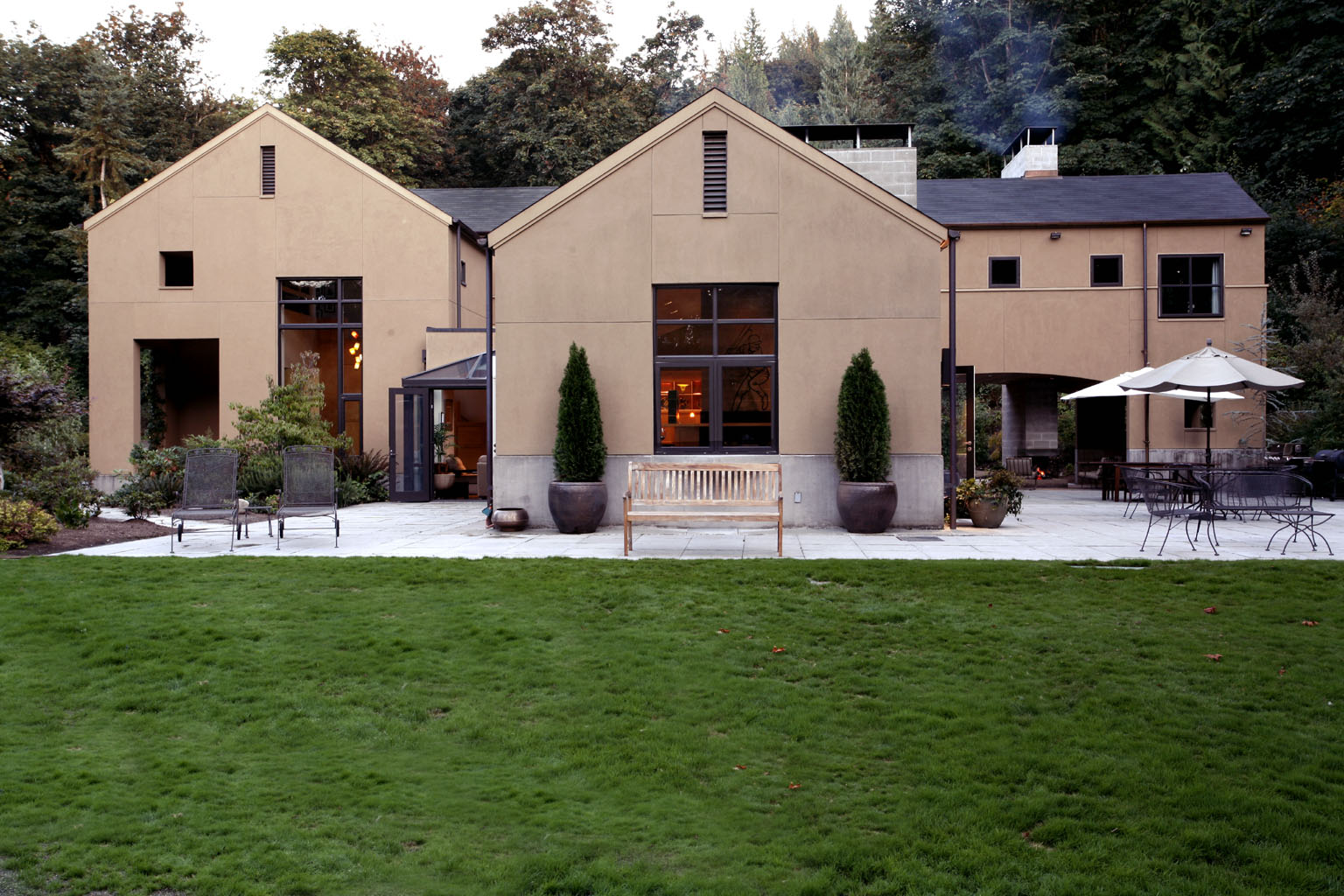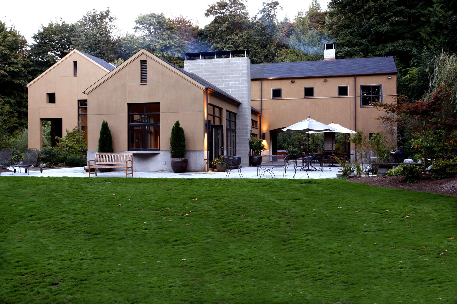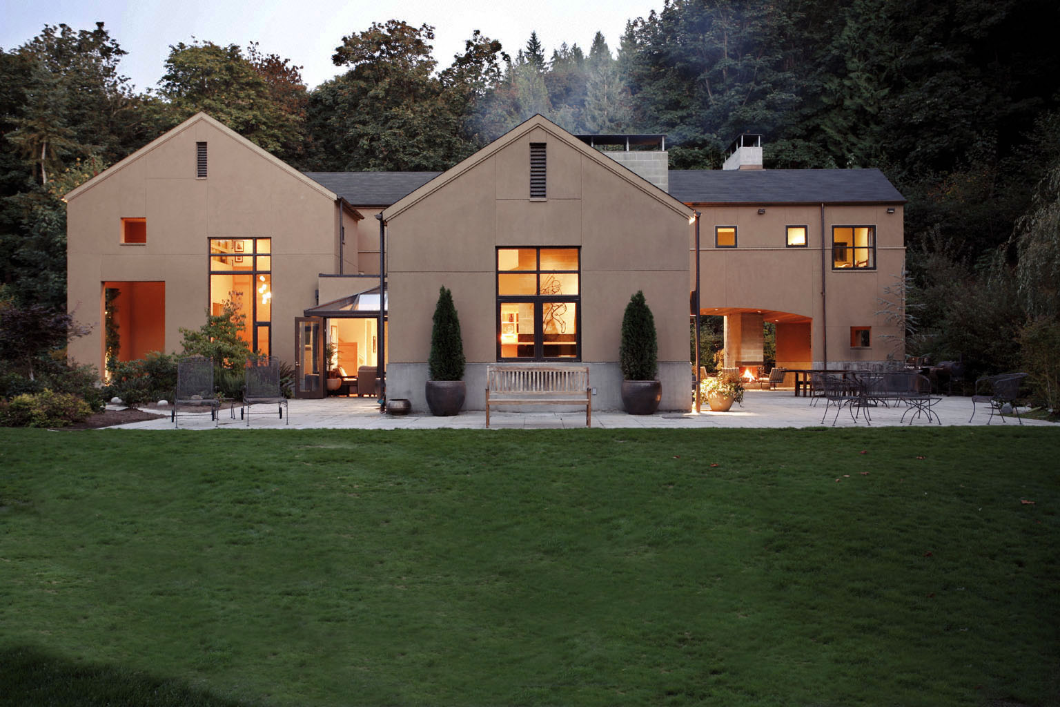 Inspired by the incremental growth of traditional Norwegian farms, this contemporary home on 23 acres was designed to expand alongside the family. Built in two phases, the house is composed of intersecting gabled volumes that extend into the surrounding landscape.