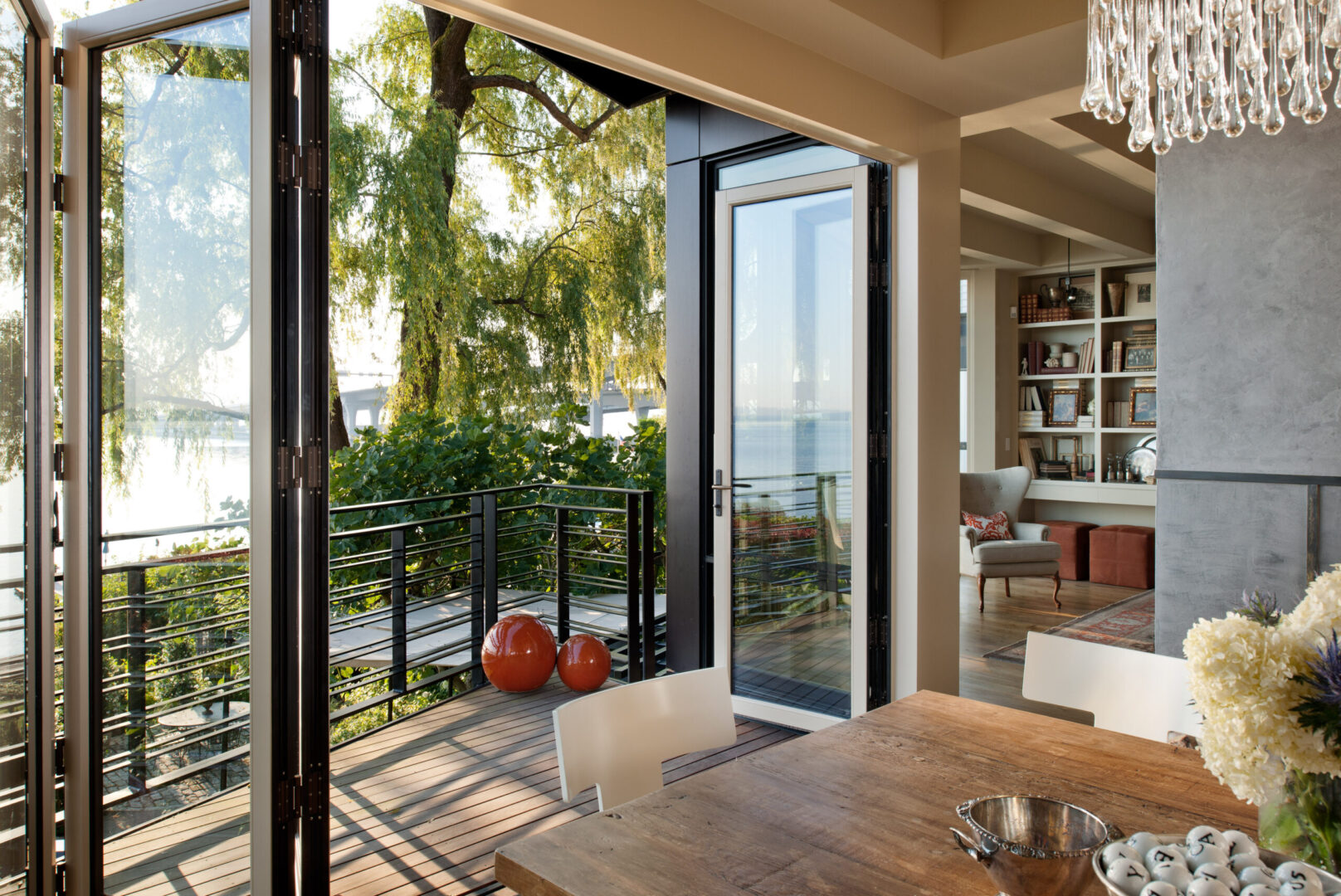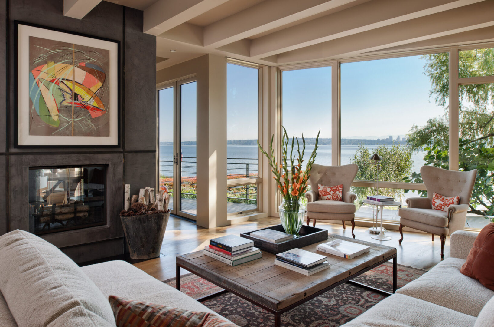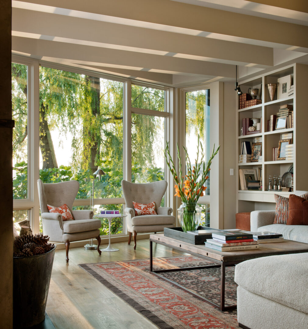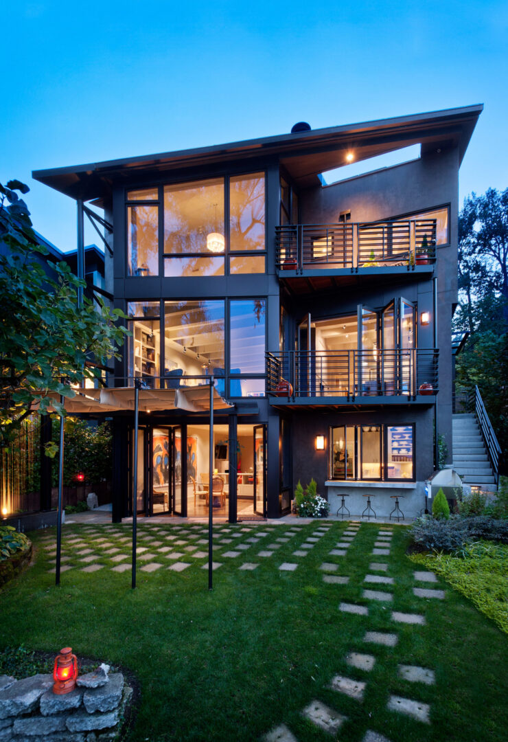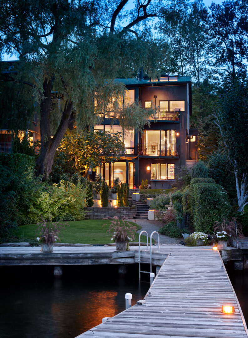 Lakeside Residence sits along the west shore of Lake Washington, oriented toward sweeping water views and Bellevue’s evolving skyline. Referencing its predecessor while embracing a contemporary sensibility, the new home reorients daily life toward the lake and gardens through expansive glazing, bi-folding doors, generous decks, and a fourth-floor crow’s nest office.